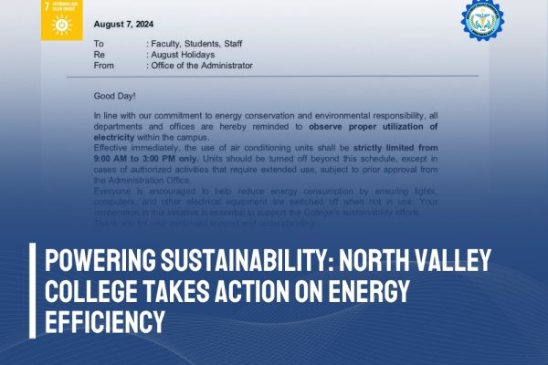 In a bid to promote sustainable energy use and environmental responsibility, North Valley College has issued Memorandum Circular No. 7,…