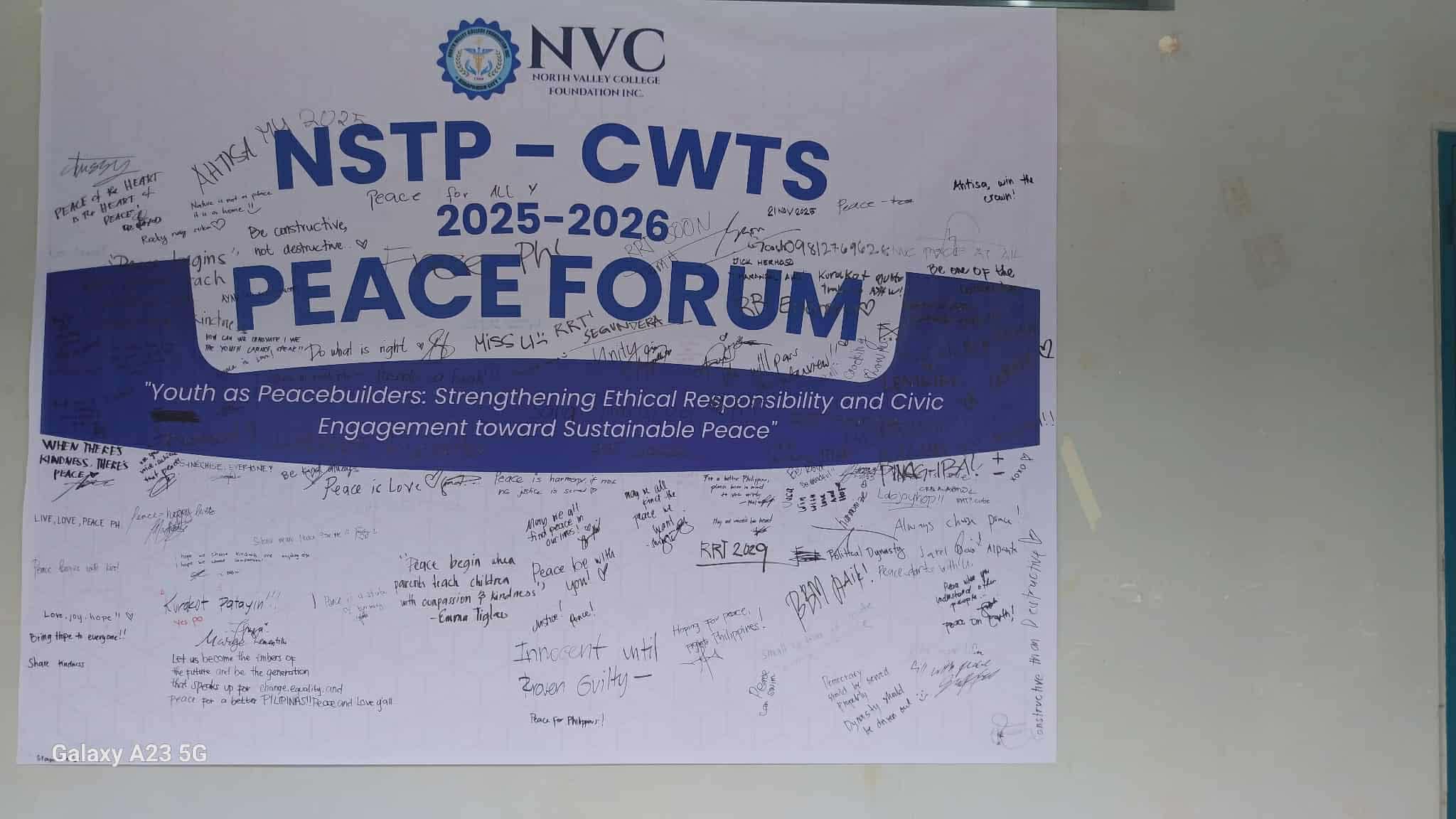 North Valley College Foundation, Inc. (NVCFI) underscored its commitment to transformative and emancipatory education as the Ethics and NSTP classes successfully organized and hosted a Peace Forum in celebration of the Mindanao Week of Peace. The activity gathered students, faculty, and partner barangay officials for a reflective, participatory, and solutions-oriented learning experience that moved beyond traditional written examinations. In his opening message, Dr. Rogelio P. Bayod, Research and Publication Director of NVCFI, emphasized that the forum advances CHEDโs Outcomes-Based Education (OBE) framework. He noted that education must foster critical reflection, civic participation, and collective problem-solving. โOur goal is to help learners confront real-world issues and design meaningful responses, not merely answer paper-and-pencil tests,โ Dr. Bayod stressed. Plenary Sessions Highlight Peacebuilding and Democratic Participation The first plenary speaker, Gen. Dioscoro โDoicksonโ Hermoso, PA (Ret.), a highly respected military officer known for his significant contributions to the peace process with the Moro Islamic Liberation Front (MILF), discussed the role of government in peacebuilding. He elaborated on security sector reforms, community collaboration, and integrated governance as foundations of long-term peace in Mindanao. The second speaker, Dr. Christopher Ryan Maboloc of Ateneo de Davao University, a noted philosopher specializing in social ethics and Mindanao studies, delivered a talk on โBuilding Grassroots Democracy: Leveling the Playing Field in the Bangsamoro.โ Dr. Maboloc emphasized inclusive participation, dismantling structural inequality, and empowering marginalized communities to strengthen democratic life and sustain peace. Reactors Provide Global and Local Peace Perspectives Mr. Rommel Dela Rosa, Team Leader and Political Affairs/Security Coordinator of the Eastern Regional Office of the United Nations Assistance Mission in Afghanistan (UNAMA), provided international perspectives on peace and conflict. Drawing from complex peace operations, he highlighted the importance of local ownership, inclusive dialogue, and trust-building. Atty. Rendel Mangliawan, Municipal Councilor of Kabacan and law professor at USM, offered insights on the intersection of local governance, legal frameworks, and grassroots peace initiatives. He underscored the responsibilities of community leaders and students in cultivating a culture of peace. Advancing the Sustainable Development Goals (SDGs) The Peace Forum directly contributes to several United Nations Sustainable Development Goals (SDGs), reinforcing NVCFIโs commitment to holistic and socially responsive education: โข SDG 4: Quality Education โ by promoting emancipatory, outcomes-based, and transformative learning experiences. โข SDG 16: Peace, Justice, and Strong Institutions โ through discussions on peacebuilding, democratic participation, governance, and the rule of law. โข SDG 17: Partnerships for the Goals โ through collaboration with barangay partners, government representatives, peace advocates, and international peace practitioners. By aligning educational activities with global targets, the institution helps shape students into proactive contributors to peaceful and sustainable communities. Peace Reflections and Commitments The forum gathered Ethics and NSTP students, faculty members, and partner barangay officials who actively engaged in the interactive discussions. The activity concluded with participants writing their thoughts, feelings, and commitments for peace on the Peace Freedom Wall, symbolizing their shared vision for a united and harmonious Mindanao. Through this successful Peace Forum, North Valley College Foundation reaffirms its role as a catalyst for critical consciousness, community engagement, and peace-centered educationโempowering learners to become advocates of justice, dialogue, and sustainable development.