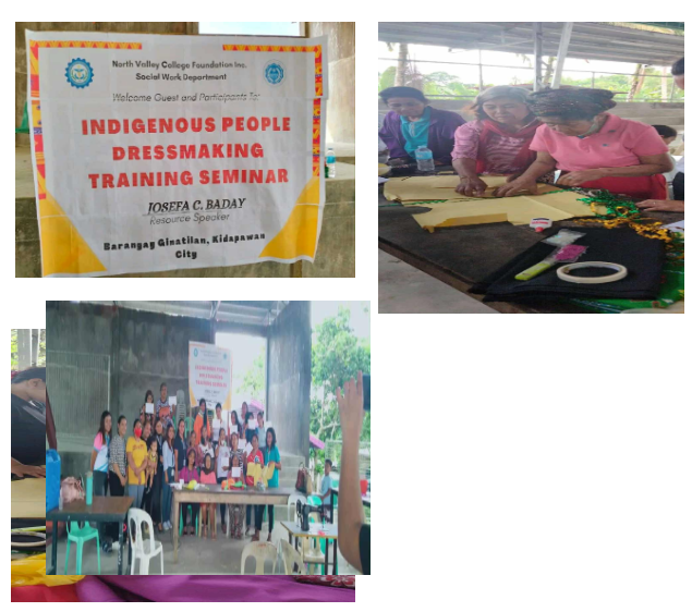 In Barangay Ginatilan, a unique initiative titled โHabi ng Pag-asaโ (โWeave of Hopeโ) brought together 17 Indigenous women for a transformative Dressmaking Workshop facilitated by Social Work students from North Valley College Foundation. The activity was designed to promote Sustainable Development Goal 8: Decent Work and Economic Growth by equipping participants with practical skills that can generate income and foster financial independence. Beyond learning technical skills, the workshop provided a platform for women to explore entrepreneurial opportunities and gain confidence in their capacity to contribute economically to their households and communities.